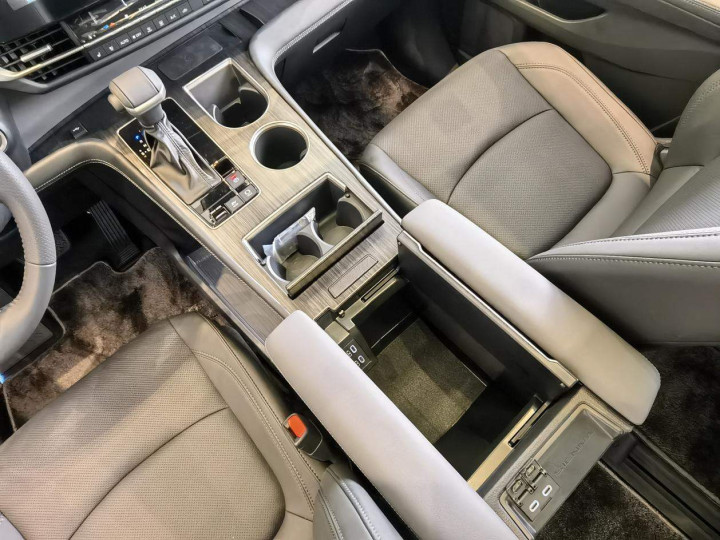 中央扶手的核心区域留给了几个传统操作,除了机械挡把以及驾驶模式切换,其它区域就是杯托、储物槽。无线充电的区域位于中控台下方,有点隐蔽。